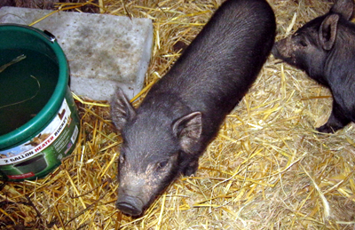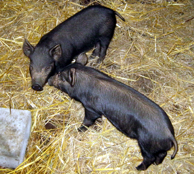 piglets, a boy and a girl. They grunt to each other and to the other pigs