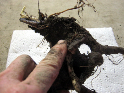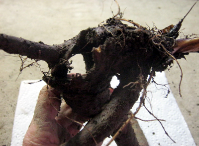 The ‘crater effect’ on ageing Comfrey plants comes from the main roots wearing out and rotting off, just as the root hairs are dying and decaying in about 3 to 4 days.