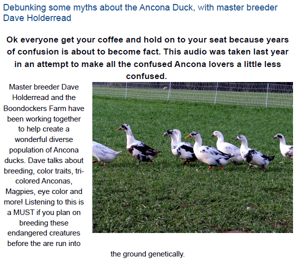 for Ancona duck breeders. The audio is courtesy Boondockers