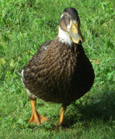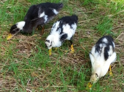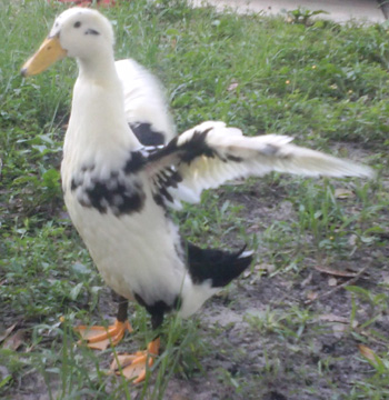 Black and White Ancona duck as in the above photo. It's unusual to get a