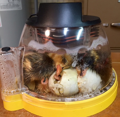 Ancona ducklings in a Brinsea Eco Mini incubator. This photo is from Liz.