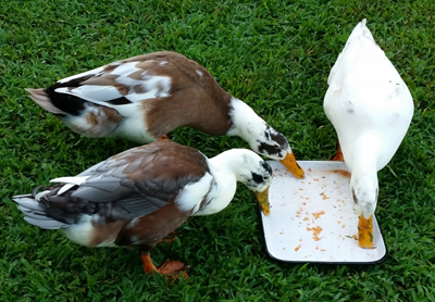 These are the 3 remaining drakes. The tricolored is for sale and should leave tomorrow.