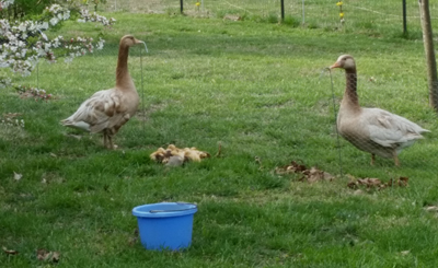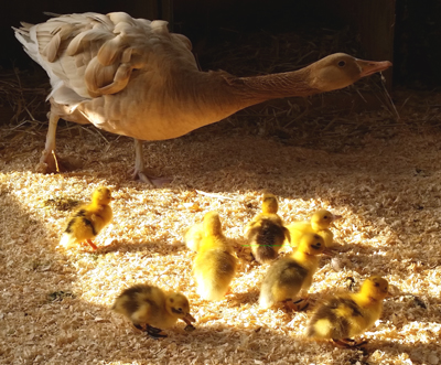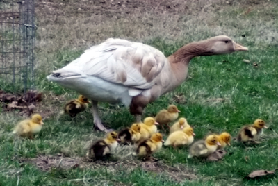 Eggs Incubated by a Broody Goose! Yes, a goose can incubate duck eggs.