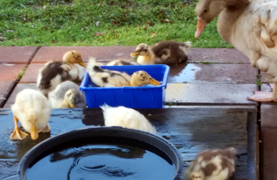 Ducklings at 23 days. "Sooo cute.....tiny wings flapping up!!"