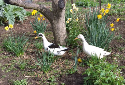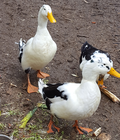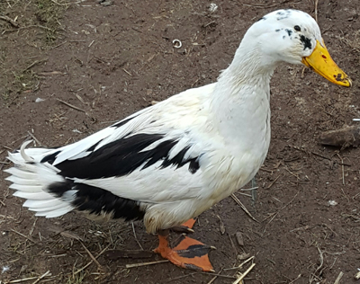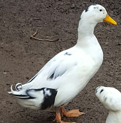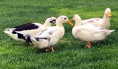 This photo of 2 adult Ancona ducks is from Cynthia, Elderflower Farm, Talent, Oregon.