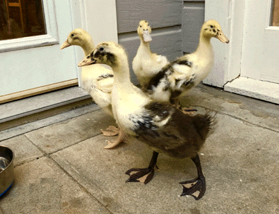 the 3-week-old ducklings for a field trip to the back porch the other day.