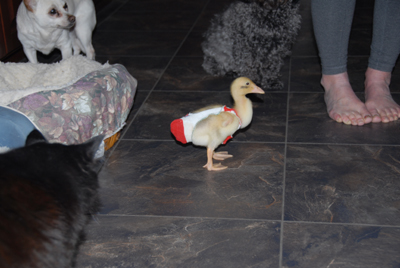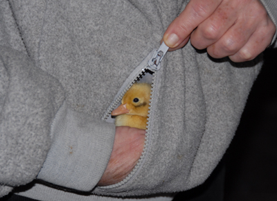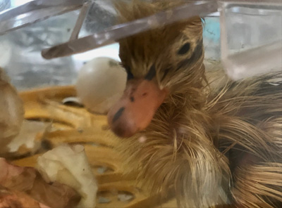 (the Ancona duckling) was busy all night long. He has made a hole and I