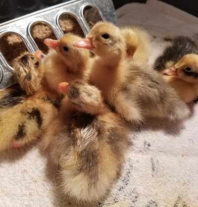 "It's so much fun watching the little ones hatch, grow.... We love Ancona ducks.... We also raise true Araucana chickens (gotta love blue eggs), Pilgrim geese, American Sable rabbits, we try to keep the rare breeds.... Been doing 4-H FFA thing with kids. It's always fun showing rare breeds and having eggs hatch at our fair in September." -Brandie, Goldendale, Washington