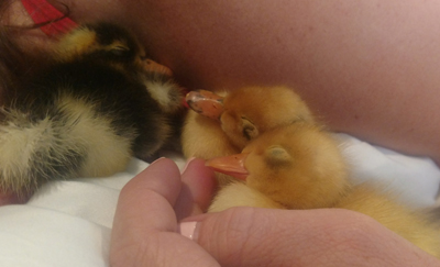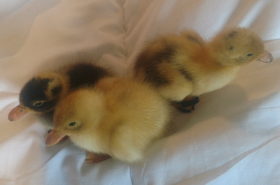 "Well, our duck hatching has come to a cute and fuzzy end. From our 4 fertile eggs we hatched 3 adorable ducklings. (One egg
