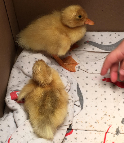 These 2 photos of Ancona ducklings are from Anya in Durham, North Carolina.