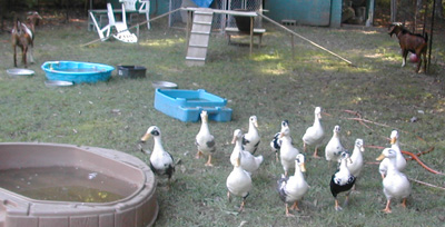 This photo is also from Kat. There are goats in the background. They get along great with ducks. |