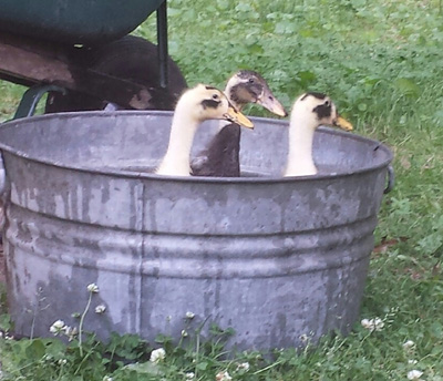 ducklings enjoying a swim in a metal tub. Photo from Jill.