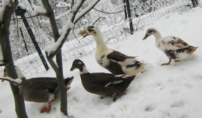 ducks like snow. They do better in cold weather than chickens do. They especially