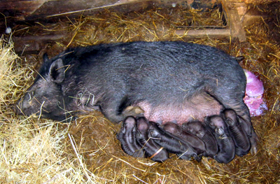 American Guinea Sow with Piglets