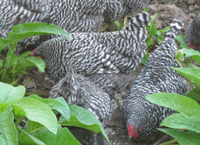 Dominiques are good foragers looking for greens, fruit, bugs and seeds.