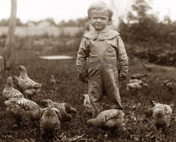 This photo is a boy in a farmyard with Dominique chickens in 1915. This image is copyright KatyDids Cards and may not be used without written permission. Contact katydidscards@gmail.com for more info.