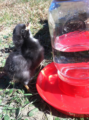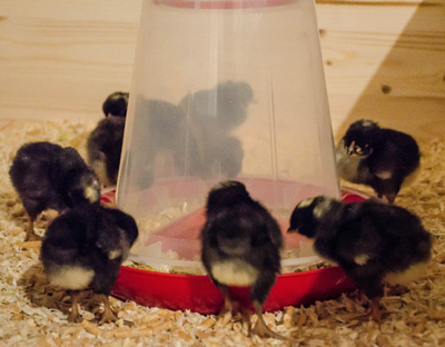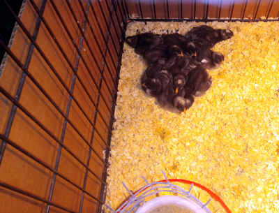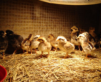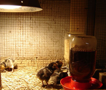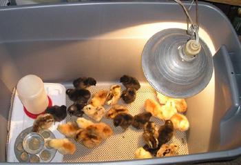 do with 1-day-old chicks you get from a hatchery. You hang the heat lamp
