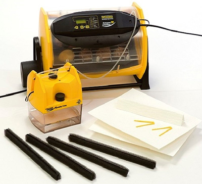 the Mini-Pro egg incubator with automatic temperature, humidity control,
