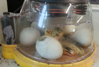 "The incubator had 24 Dominique eggs, and we now have 17 healthy thriving chicks. I did use the cooling feature this time as per the Brinsea instructions. Our whole family has enjoyed this so much. I have been telling people about your farm and what a great experience it has been. Our older batch of chicks from your farm are great.....healthy and adventurous." -Kate, Weaverville, North Carolina