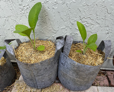 "I started them all in a raised bed and then moved them to four gallon grow bags because we are about to move to a new home, and I do not want to leave these behind. I will get them in the ground by the end of the month.