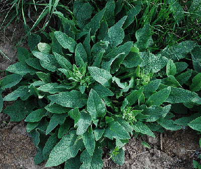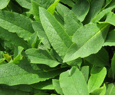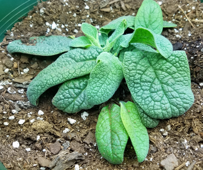 of Russian Bocking comfrey. The leaves grow to about 1 to 1˝ feet tall.