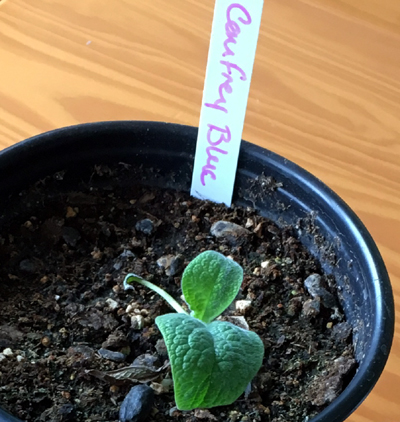 The small photo of the blue-flowered comfrey in a pot is from Alex in Reading, Pennsylvania.