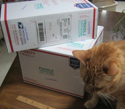 fertile hatching eggs are shipped through the Post Office by regular Priority
