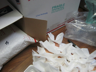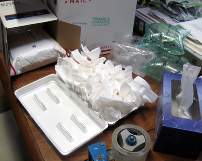 I have stamps I place on all sides of the box that says: "Fragile, Hatching